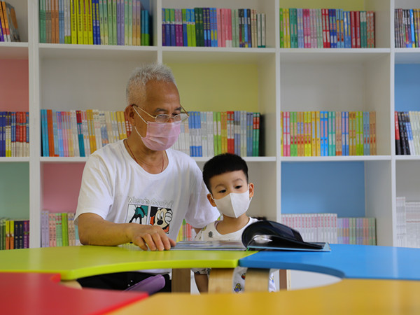 “要不要分享冰淇淋?”还未完全走进阳光阅读区,就听到孩子清脆的声音,那是金寨南路社区睦邻老书记伍先举和他的孙子,可爱的小朋友正拿着绘本认真的给爷爷讲故事。爷爷说,小朋友特别喜欢这里,以后无论是夏日还是寒冬就不用大老远带着孩子跑去书店阅读了。家门口的“转角时光”不仅方便了居民,更成为亲子教育的优质课堂。
