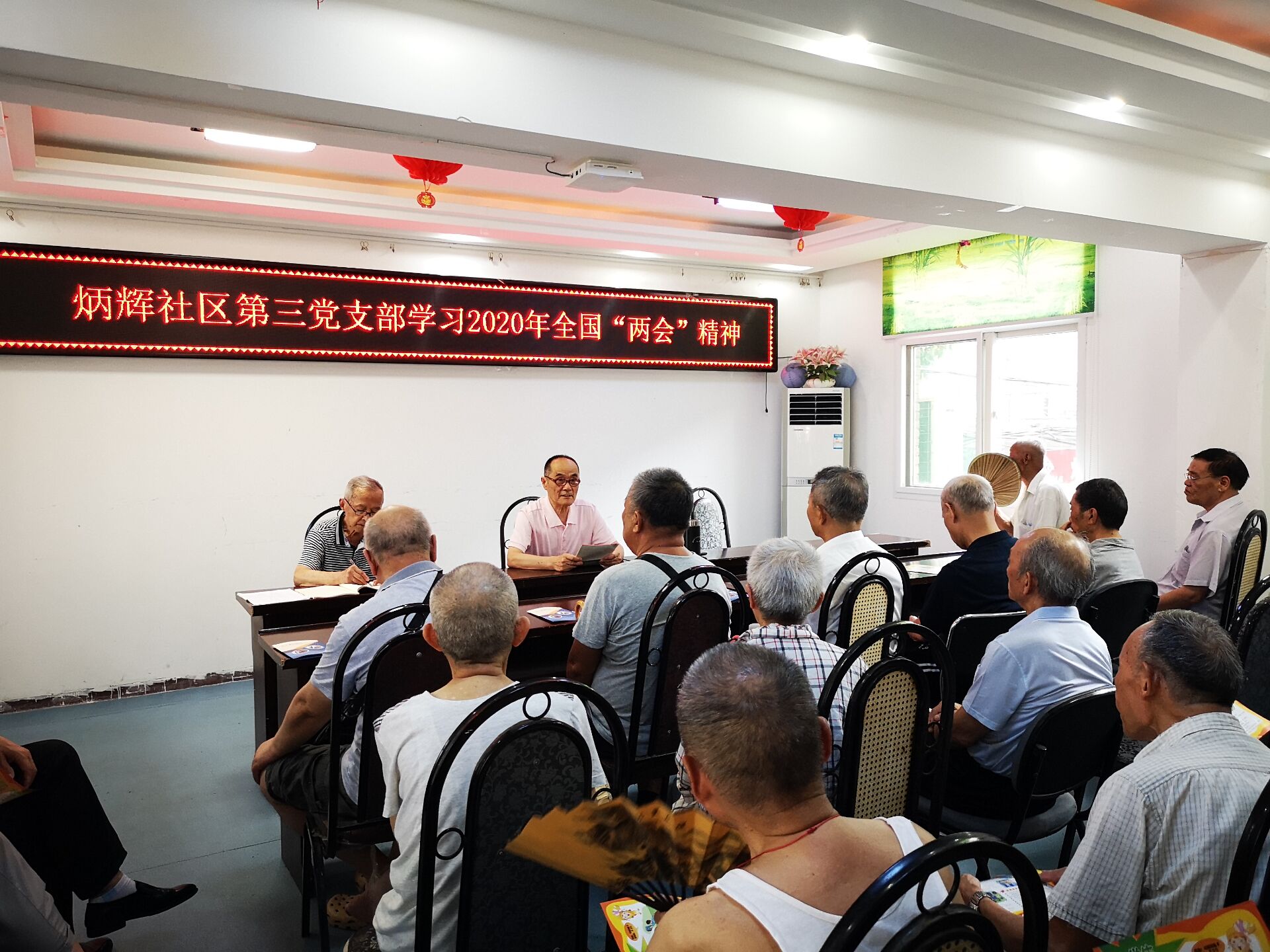 炳辉社区党委坚持在加强党员思想政治建设上下大力气,以建党99周年为契机,开展“不忘初心、牢记使命”主题教育活动,对各党支部“三会一课”、组织生活会、民主评议党员落实情况进行常态化督查。各党支部依托党群服务中心,集中学习全国“两会”精神,对辖区在职、企退、流动、党员进行培训,补足党员精神之“钙”。