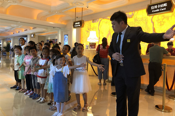 滨湖明珠社区党总支招募了18组青少年家庭共赴白金汉爵大酒店开展暑期实践活动,通过“体验式教育+职业角色扮演”,青少年小朋友真实体验酒店职业角色的工作,认识社会职业的分工,锻炼自我,同时也给家长多一个视角去了解孩子。白金汉爵大酒店党支部安排了专业的酒店服务人员为大家讲解酒店的楼层分布、接待服务礼仪以及铺床、叠床花技巧,这次活动不仅让青少年小朋友得到一份职业的亲身体验,也让家长们大开眼界,认识每一份职业背后的工匠精神。
