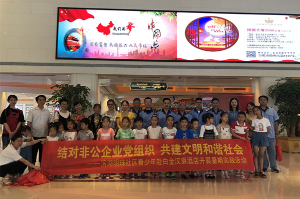 包河区烟墩街道滨湖明珠社区党总支积极与辖区非公企业党组织建立结对共建关系,并鼓励非公企业党组织认领社区志愿服务项目,定期开展楼栋党建服务、青少年实践、文化拓展等系列活动。8月21日上午,在“包河区第四届社区公益创投——同心共筑 和美益家社区治理项目”的支持下,滨湖明珠社区党总支联合第三巴士B1线党支部、白金汉爵大酒店党支部共同开展关爱未成年人发展活动。