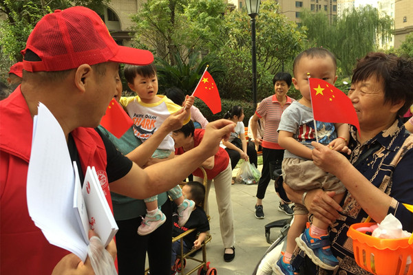 李彦巧是中铁滨湖名邸小区1栋楼的党小组组长,她带领小区内的其他3名党员,在中铁滨湖名邸小区中央广场悬挂国旗的区域,向过往的居民详细介绍五星红旗的含义和象征,让居民们明白五星红旗是革命先辈们用鲜血染成的,每个人都应该尊重和爱护国旗,并向过往的居民发放国旗,共同向祖国母亲献上最诚挚的祝福与敬意?!敖裉煳艺嬲靼琢宋逍呛炱斓暮澹巧袷ゲ豢汕址傅?,我会像爱护自己的生命一样保护国旗?!毕殖〉囊晃痪用裾庋档?。与此同时,护旗手志愿服务队的队员在辖区其它小区开展护旗行动,共同?;す斓氖ソ嗪屯暾?。护旗手志愿服务队将在接下来的国庆假期,持续开展护旗行动。