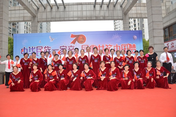 为热烈庆祝中华人民共和国成立70周年,9月25日下午,烟墩街道滨湖惠园社区组织开展“中华民族一家亲同心共筑中国梦”主题文艺汇演,为祖国生日献礼。