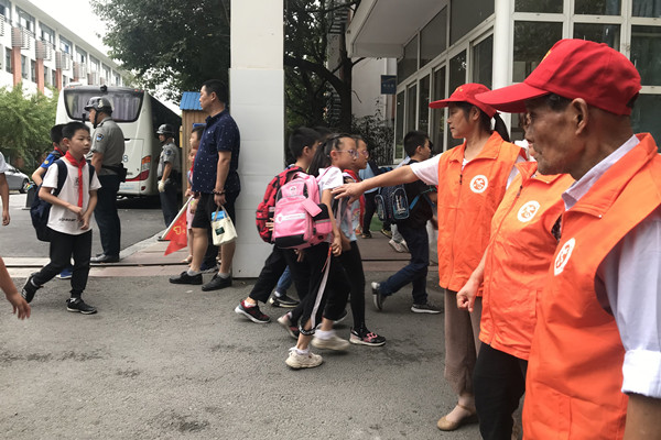 “一位党员就是一面旗帜。”本次活动地点在辖区合肥师范附小门口和主干道路两边。临近放学时间,前来接孩子的家长驾驶着各种交通工具陆续到达学校门口,而我们的党员们早早的就做好了准备,变身成为“交通员”,身穿橙马甲,头戴小红帽,引导家长们规范停车,确保道路畅通。随着放学高峰期的到来,党员们劝导机动车礼让行人,护送孩子文明过斑马线,有序上车?!罢媸翘恍荒忝橇?,有你们护航,孩子们上学又多了一分保障!”一位家长情不自禁的说。