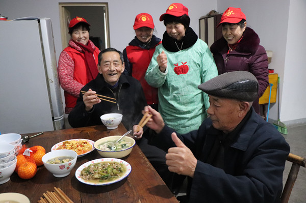 爱心午餐,服务进家。针对雨雪天气,老人出行买菜不方便,党员和居民骨干去菜市场买来了鱼、肉、蔬菜等等菜品。来到老人家中,走进厨房,为老人准备爱心餐,有的洗菜、有的切菜、有的炒菜,经过紧张的忙碌,滨湖欣园小区的10户孤寡、残疾、独居老人吃上了热腾腾的爱心午餐,感受到了冬日里暖暖的邻里关爱。