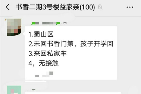 “3#2002,与武汉人无接触史,无发烧咳嗽症状!”“10#1504,与武汉人无接触史,无发烧咳嗽症状!”像这样的微信群回复语,在包河区烟墩街道滨湖惠园社区书香门第小区的楼栋微信群中的居民们每天都会报备一次。通过建立疫情防控楼栋微信群,在减少人员流动的同时,又能在第一时间把党和政府的声音传达到户,居民互相提醒注意事项,大家共享和推送疫情防控知识以及最新的疫情进展,这一举措大大提高了包保人员摸排疫情信息的效率,减少了人员接触,降低了流动性风险,同时将疫情防控知识快速及时传递到每个人的身边。