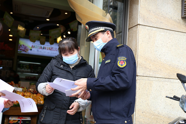 3月4日,先锋队队员们在辖区西藏路、烟墩路、杭州路、贵阳路等小区周边、沿街门店开展志愿服务活动?!澳?,爷爷奶奶,现在是疫情防控的关键时期,买完菜就尽快回家,不要扎堆聊天,还要继续做好自身防护,与人交流要保持一定的距离!”在四川路和武汉路交口,城管队员们正对买完菜聚集聊天的居民进行文明劝导?!昂煤煤?,这不刚买完菜看到熟人就多聊了几句,我们马上回家了!”居民们纷纷表示理解,随及便分散开来。