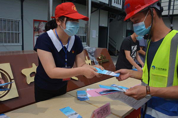 包河区烟墩街道竹园社区党支部为大力营造一线工人学习法律知识的氛围,增强法律知识储备,加强普法宣传,为辖区中海集团建筑工地项目管理人员和一线工人发放法律法规学习手册,形成全员学法的良好氛围。