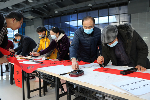 辞旧迎新少不了春联添福。滨湖明珠社区邀请书法爱好者现场挥毫泼墨为现场的企事业单位即兴献上一幅幅新春的吉祥祝福,愿笼罩在疫情下的企事业单位能在新的一年里焕发新彩。还有不少手工爱好者现场制作迎新灯笼为庆祝元旦而增添年味。寒冷的冬天不仅有大家对新年新气息的展望,还有大家对一起走过不平凡一年的相互鼓励。在“两人三足”、“你来比划我来猜”等互动游戏中,大家暂时忘却了工作的压力、疫情的笼罩、冬季的寒冷,在紧张刺激的角逐中增加认识和了解,在追逐名次中增强了团队协作。随后,趣味无穷的抽奖环节让大家收获满满。大家把对新年的希望与心愿都写在了心愿卡上,有想找对象的,有想入党的,还有想回家跟父母团圆的……每个炽热而单纯的心声让我们感动并期待着,也祝大家在家庭事业上取得丰收佳绩。