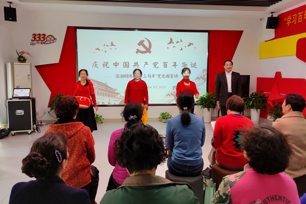 在党的百年华诞到来之际,包河区烟墩街道滨湖明珠社区党委精心谋划,在学党史、悟思想、办实事、开新局上下功夫,学好党史“必修课”,当好红色“传承人”。近日,来自滨湖明珠社区的几名草根宣讲员,自编自演《庆祝中国共产党百年华诞》,在“三句半”中将党的百年光辉历程娓娓道来。