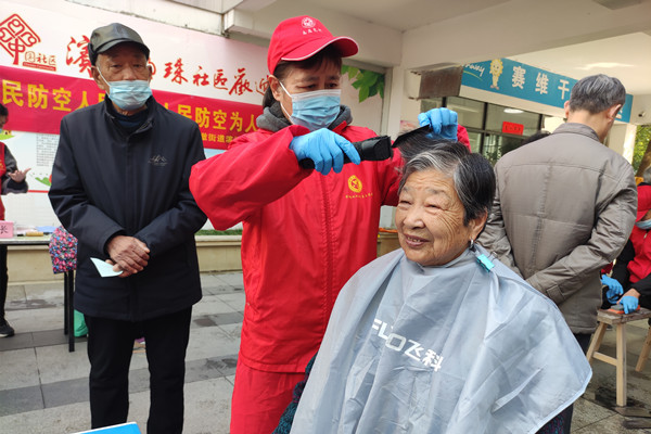农历二月初二,民间有“龙抬头”之说。相传从这一天开始,万物苏醒,春天来临,并且有剃龙头的习俗,以此讨个好彩头。为了给居民提供更贴心、便利的志愿服务,进一步弘扬雷锋精神,“老村长”便民服务队走进社区志愿服务广场,为居民提供理发、磨刀磨剪子等志愿服务。来理发的高龄老人居多,党员张志红动作娴熟、技术精湛,理发推子和剪刀在长长短短的头发间穿梭,一位刚理发完的老人拉着志愿者的手高兴地说,我很喜欢这个发型,你理发的手艺很好,谢谢你。一句话让志愿者充满了成就感,活动受到居民们的好评?;疃殖〕死矸⑼?,磨刀磨剪子、血压血糖测量、眼科检测也受到居民欢迎。
