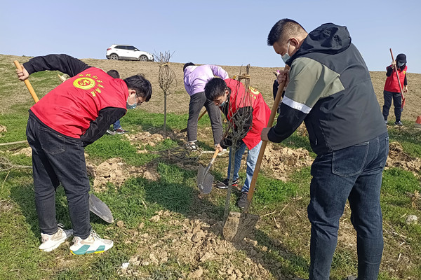 植树现场,志愿者们个个热情洋溢、干劲十足,以饱满的热情投入到播种绿色的行动中。三两人组成一组,充分发扬团结协作、吃苦耐劳的优良作风,分工合作,积极配合。有的挥锹铲土、有的扶树填土、有的拖运树苗。大家配合默契,劲儿往一处使、汗往一处流,不怕脏、不怕累,干劲十足。经过辛苦劳动,一棵棵新栽的树苗亭亭玉立,在明媚的春光中展现出勃勃生机。“非常高兴能够参加此次的植树活动,植树对?;に亮魇А⒙袒肪秤泻芎玫淖饔?,保护好环境关乎你我他,以后每年我还会来参加这样的植树活动,尽自己责任的同时也为家园绿化作出一份贡献。”党员志愿者孙杰说道。