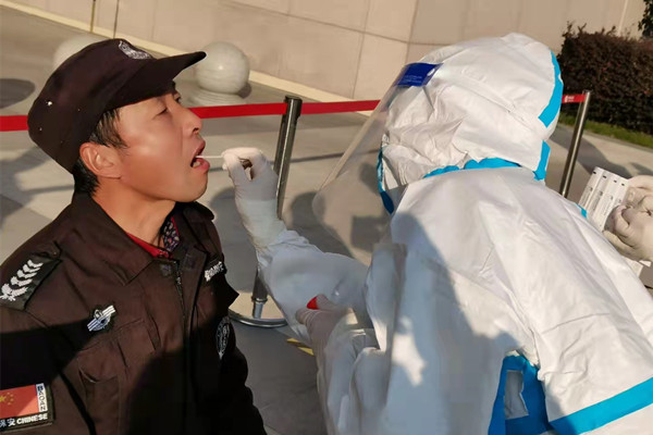 近期合肥周边区域疫情散发、频发,为方便居民就近进行核酸检测,落实常态化疫情防控措施,国宾综合门诊部增设临时核酸采样点,“放松,嘴巴呼吸,啊……”身穿防护服的核酸检测采样人员弓着腰,将一根无菌长棉签伸进居民的口中转了几圈,然后,麻利地将棉签顶端折断在装有细胞保存液的采样管里。这是国宾综合门诊的采样医生王心茹正在采样,她是一名医生也是一名党员,自临时采样点设立以来,她每天按照要求执行三级防护,防护服、N95口罩、护目镜、面罩把人捂得严严实实,密不透风。她说,“我不怕辛苦,就盼着疫情能早日结束!”