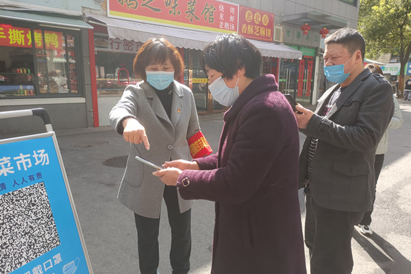 省巢湖管理局下沉社区党员干部胡素平,被分配在菜市场门口执勤。通过用心观察,她发现菜市场具有开门早、关门迟、午不休的特点,为了避免门口执勤人员断岗、进市场人员漏管的问题,她把情况向所在单位党组织反映后,很快单位便向菜市场增援了11名下沉党员干部,每天按照早班、晚班,轮流排班接力,坚持确保门口执勤人员无缝衔接,进市场人员不漏扫一码。
