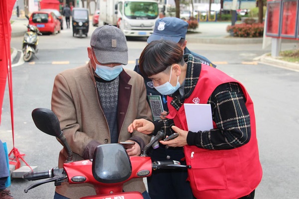 56岁的退休党员吴大凤得知社区急需一线志愿者,主动请缨报名。吴大凤家里两个小孙子需要照顾,她做通了家人的思想工作,舍小家、顾大家,迅速上岗,很快就胜任了登记信息、监测体温、查验“两码”等工作。