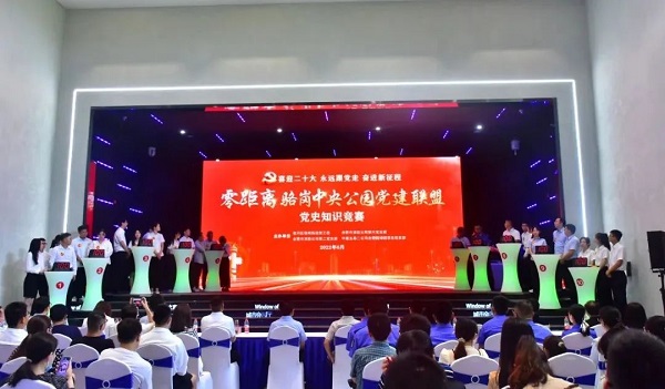 为进一步推动党史学习教育常态化,巩固拓展党史学习教育成果,6月26日下午,在骆岗中央公园智慧中心,“零距离”骆岗中央公园党建联盟单位联合举办“喜迎二十大、永远跟党走、奋进新征程”党史知识竞赛,旨在进一步加强骆岗中央公园党建联盟单位的共建联系,实现服务中央公园建设的“零距离”,形成共谋发展的强大“凝聚力”。