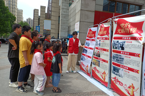 活动中,全国基层理论宣讲先进个人——鲁化带大家共同回忆了党的峥嵘岁月,来自合肥科技职业学院的退役大学生桂天翔向大家分享了自己参军的故事,少先队员们在团员组织下一起观看了中国共产党光辉历程图片展,并共同探访了社区“光荣在党50年”老党员,进一步感悟党的初心使命。