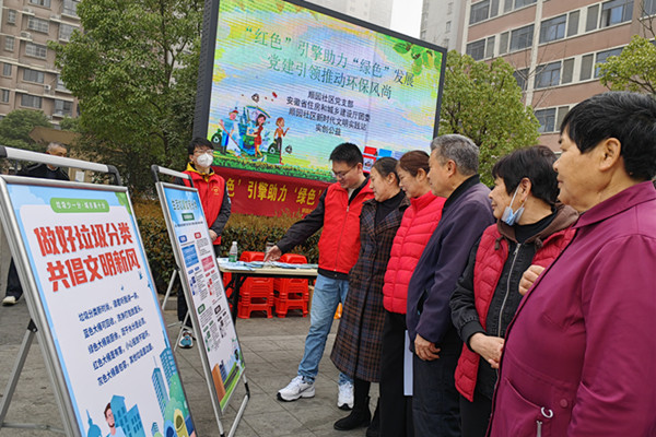 为提高居民垃圾分类的意识,促进垃圾分类习惯的养成,顺园社区党支部、顺园社区新时代文明实践站坚持党建带团建,联合安徽省住房和城乡建设厅团委、实创公益,发挥党团先锋作用,于3月9日开展“‘红色’引擎助力‘绿色’发展 党建引领推动环保风尚”垃圾分类主题活动。